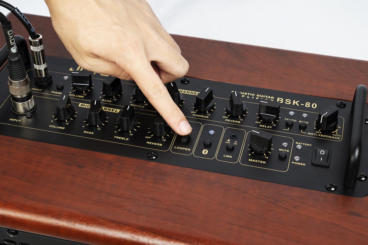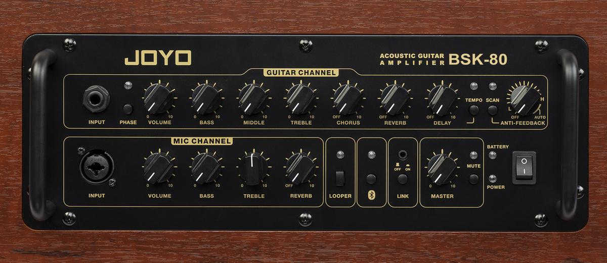 Joyo BSK-80 to wszechstronne combo akustyczne o mocy 80W, stworzone z myślą o muzykach grających na gitarze akustycznej i wokalistach. Dzięki dwóm kanałom (Guitar + Mic) z dedykowanymi efektami oraz wbudowanemu footswitchowi, wzmacniacz sprawdza się zarówno podczas ćwiczeń, jak i występów na żywo.