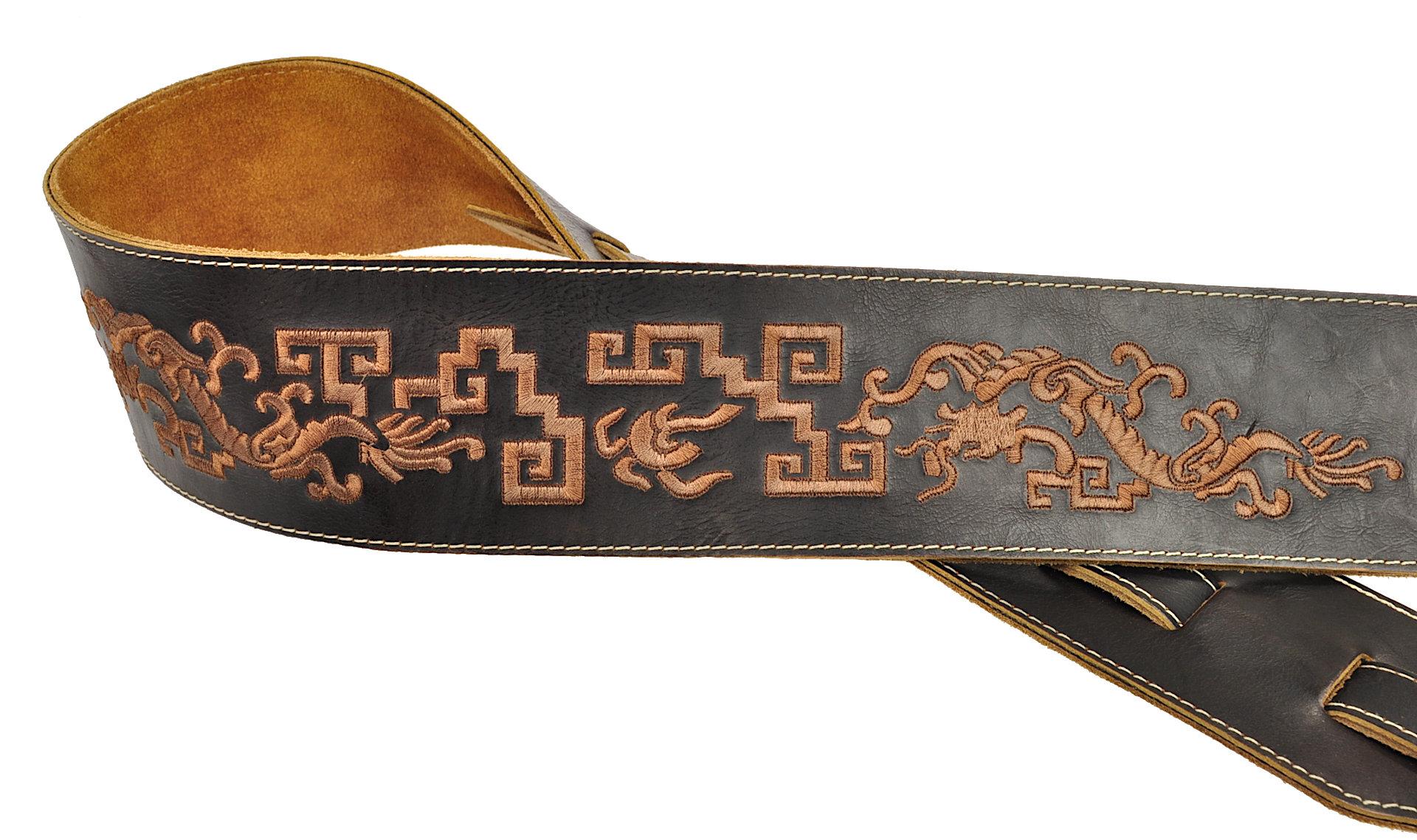 Rali Embroidery 08-06 - skórzany pas do gitary elektrycznej lub basowej wyszywany we wzory nicią bawełnianą